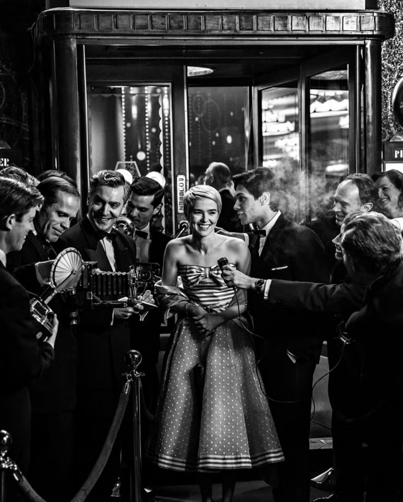 La Nouvelle Vague presenta una paradoja notable respecto a la presencia femenina. Estuvo dominada por directores masculinos cuyas películas frecuentemente presentaban miradas problemáticas sobre las mujeres. Sin embargo, la ruptura con el sistema de estudios abrió espacios para mujeres en roles técnicos y creativos antes cerrados. Linklater presenta a Jean Seberg (Zoey Deutch) no solo como actriz/musa de Godard, sino como mujer con agencia propia que cuestiona los métodos del director y negocia su espacio en el set.