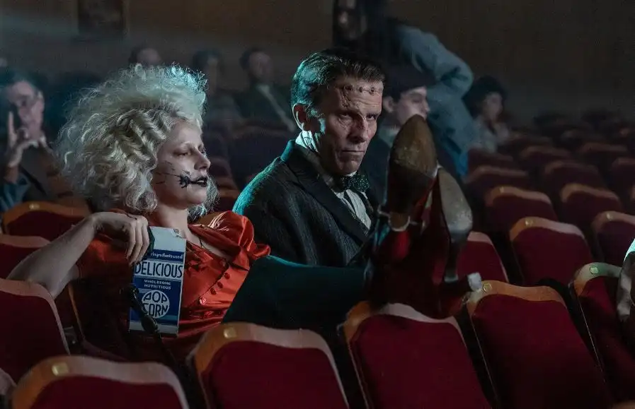 Gyllenhaal parte exactamente de ahí y lo tuerce. El Chicago de los años treinta que construye para ¡La Novia! es esa misma ciudad-máquina: estilizada, brutal, donde los cuerpos de las mujeres son moneda de cambio, posesiones transferibles entre gánsteres, científicos y amantes. Ida muere porque un hombre la reclama como suya y ella se niega. La resucitan porque otro hombre la necesita como compañía. Lo que en Lang era metáfora de la alienación industrial, en Gyllenhaal se convierte en diagnóstico del patriarcado como sistema de producción y descarte de cuerpos femeninos.