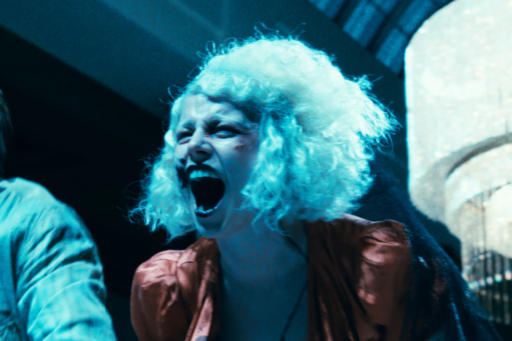 El personaje de Julianne Hough, «Jinx», aparece en el espacio del club queer donde actúa Fever Ray, un espacio que Gyllenhaal filma como un club nocturno de lo queer y lo muerto. Esa ecuación (Queer y muerto) no es casual: es el lugar donde viven quienes el mundo normativo ha declarado inexistentes. El club subterráneo es literalmente una cripta que late.