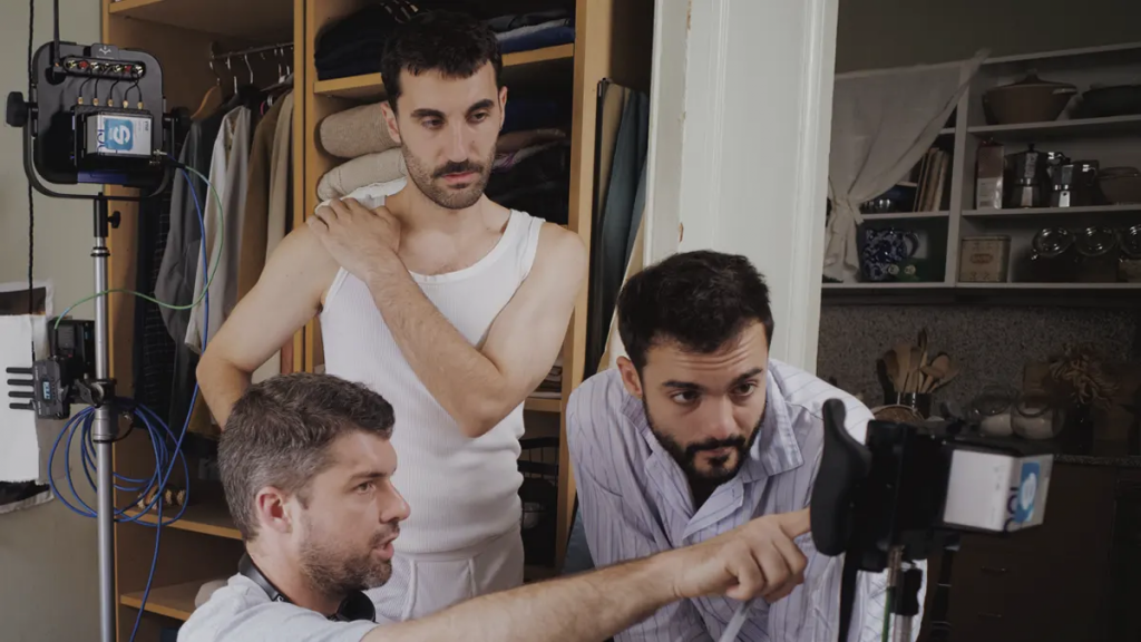 Y sin embargo, el film sí introduce elementos que podrían romper esa convención (y que precisamente por eso hacen más evidente su cobardía narrativa). El cuñado de uno de los protagonistas, su amigo, las referencias al uso de apps de encuentro, la existencia de otras parejas abiertas en su entorno, el intercambio entre ellas: todo eso aparece en el film como “una ventana indiscreta hacia un deseo que la película no se atreve a mirar de frente”. Son detalles que se asoman, que sugieren un universo de prácticas y negociaciones afectivas con sus propias reglas, sus propios códigos y sus propios conflictos, mucho más interesante que la monotonía conyugal que ocupa el primer plano, pero que quedan en una gama de pura observación. Se enuncian, se dejan ver brevemente, y se meten debajo de una alfombra de pulcritud irrealista.